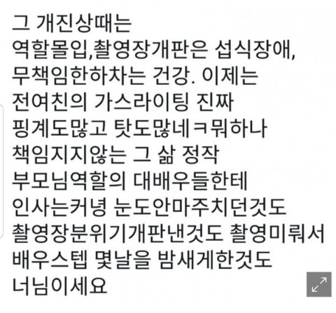 저도 가스라이팅 피해 경험자라서 당시 김정현이 서예지때문에 얼마나 심리적인 압박을 느꼈을지 이해가 돼요. 그리고 개인적인 사생활로 인해 서현 및 드라마촬영에 피해를 준 것도 공인으로써 많은 질타와 그에 합당한 벌을 받아야 하는 것도 맞는 거구요. 하지만 저는 김정현이 서예지한테 끌려다닐 수 밖에 없었던 이유가 있을거라고 생각해요. 제가 김정현씨와 같은 상황이였을지는 모르겠지만 가스라이팅 피해를 당해봐서 잘 알아요...서현과 드라마 스텝분들한테 분명히 잘못한거는 맞아요. 다만 저는 김정현씨를 옹호하는 사람이 아니고 가스라이팅 피해자가 받았을 고통을 알고 있어서 이해하는 거예요. '청소년이면 이해하겠는데 다큰 성인이 시킨다고 그걸 해?' <- 경찰에 신고하러 갔는데 형사님께 들었던 말 이였어요. 형사님들이 저보고 이해가 안된다 왜 시킨다고 하냐 진짜 너를 죽일줄 알았냐 그걸 믿는 바보가 어딧냐 며 제가 피해자 임에도 불구하고 저를 꾸짖자 펑펑 울면서 신고도 하지 못하고 나왔어요...너무 억울해요 ㅠㅠ