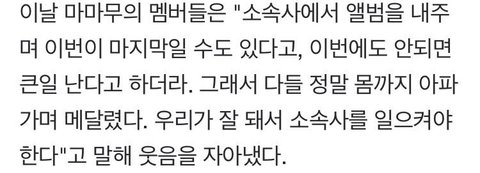 이후 옥탑방에서 숙소생활 후 마마무로 데뷔