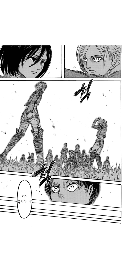 미카사는 완전한 인간이고 애니는 거인화가능한 인간이잖아 미카사를 인간, 애니를 거인이라고 했을 때 에렌이 저기서 나는 어느쪽이지..? 하는게 과연 나는 인간인가 거인인가냐고 하는것같았음