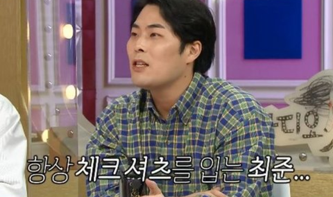그리고 또 최준은 항상 체크 셔츠를 입는데,