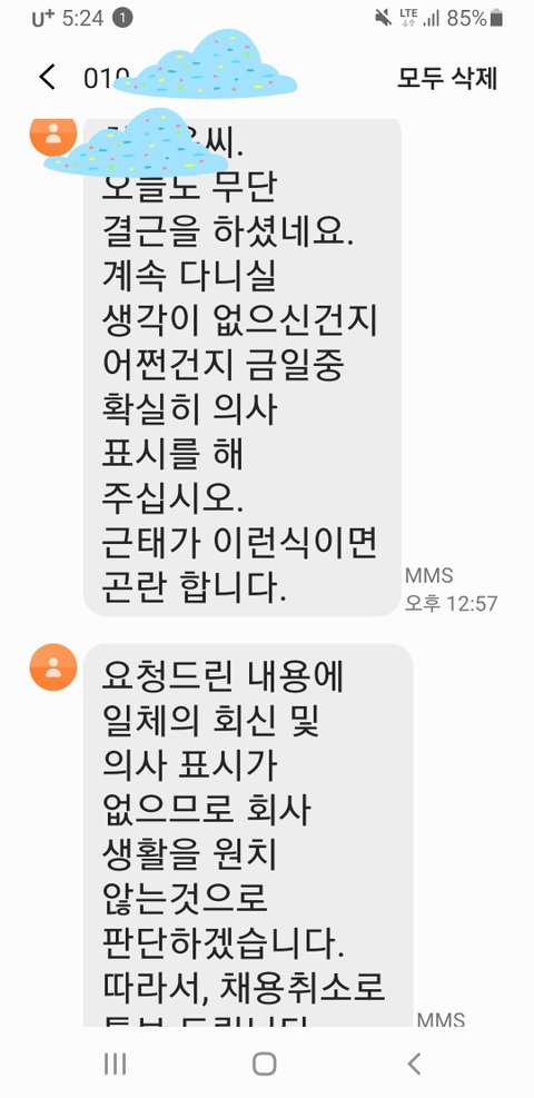 무단결근했다고 글쓴사람인데 회사에서 문자왔어요.도와주세요.