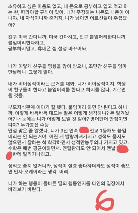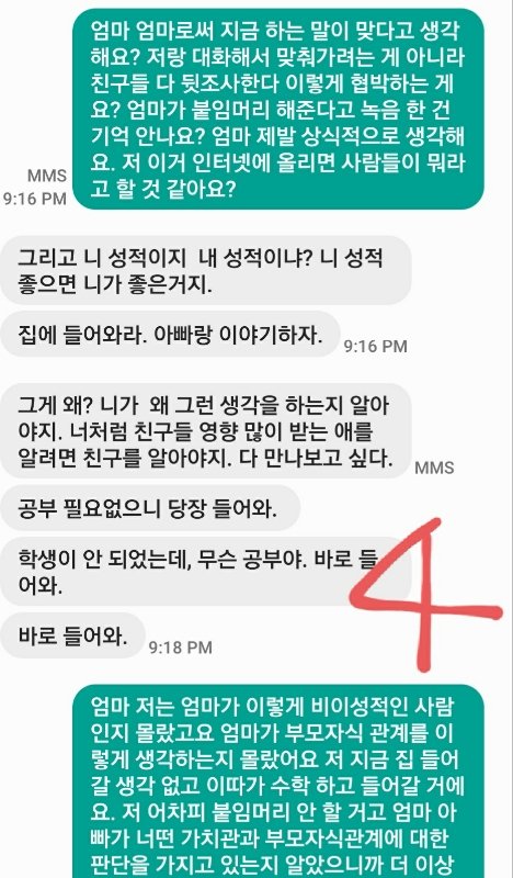 너도 말잘하는데 엄마말도 일리가 있네.학생 본분이 있고 공부보다 인성이 더 중요하지. 약속 안했다는 전자하라면 엄마말이 더맞음. 근데 딸도 되게 착하고 공부 잘하는 학군이라서 그런지 애가 순하고 착하고 대견하네