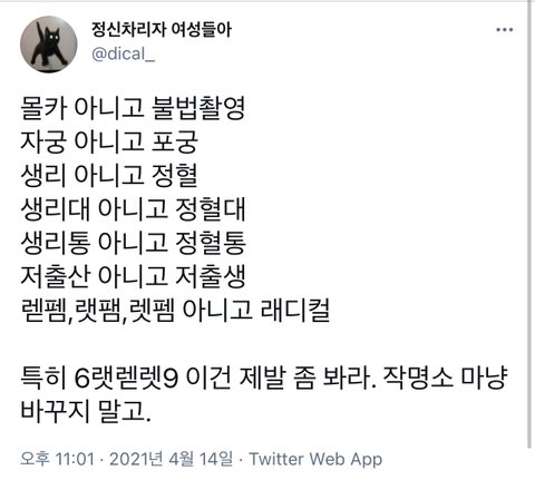 몰카 불법촬영으로 바꿔불러야 하는 건 맞는데 ㅇㅇ... 울학교에서 초빙된 외부강사도 똑같은 얘기했음 몰카라고 부르는 건 너무 가볍게 느껴지잖아 장난같기도 하고
