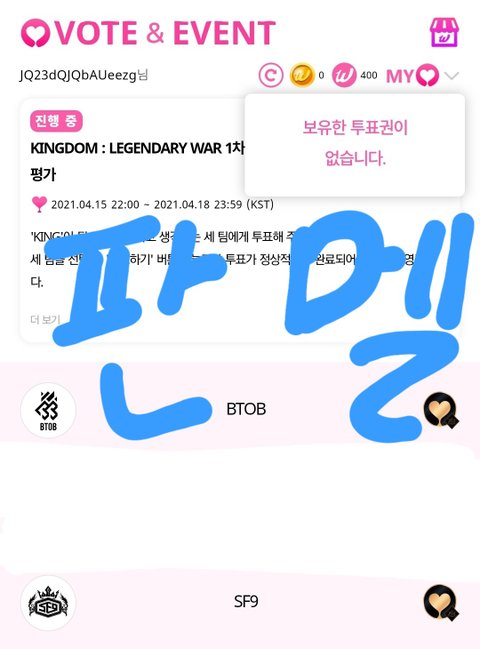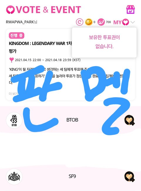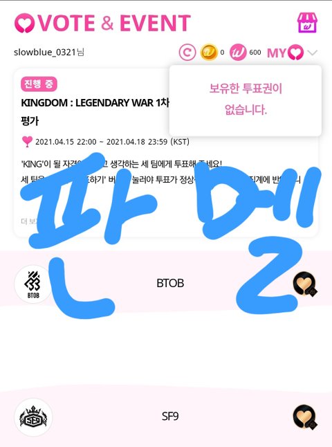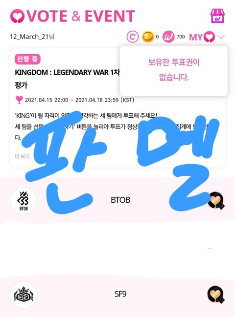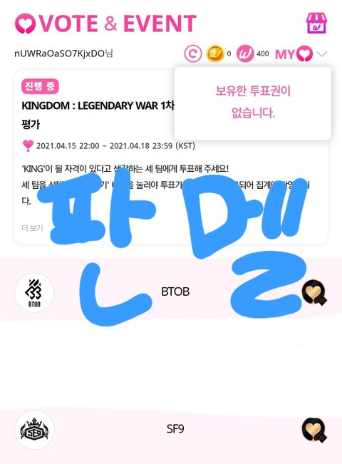 sf9 분들 진짜 잘했는데 왜 그 순위인지 모르겠거든 그래서 내 계정 다 털어서 투표하고 옴 이런 거 올려도 되는 거지..? 안 되면 말해줘 바로 지울게ㅠㅠ 판타지 힘내!!
