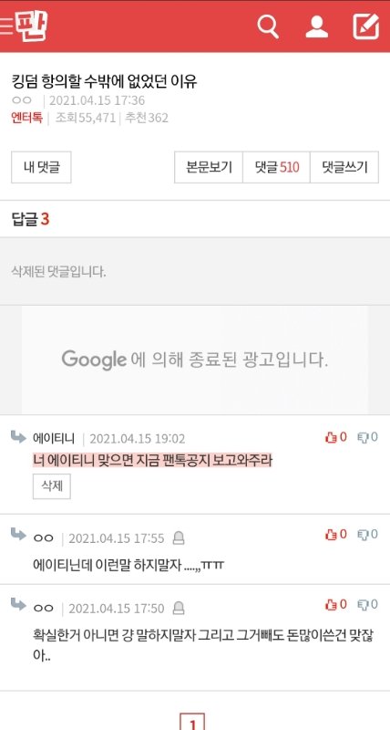 내가 몇번 봤어 풍선이라면서 커버치고 다니는 거 발견해서 에이티니면 팬톡 공지보고오라고 댓글까지 남겼었어 나보다 먼저 와있던 티니2명도 댓삭하라고했었고 다시 가보니까 댓삭 되어있더라