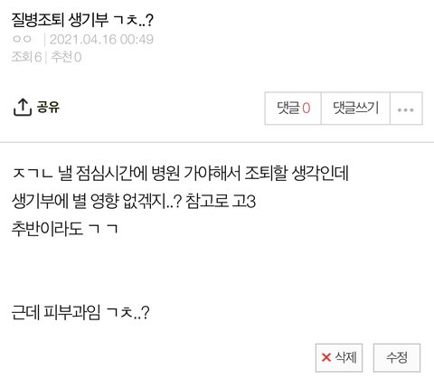 1회 질병조퇴 생기부 ㄱㅊ..?