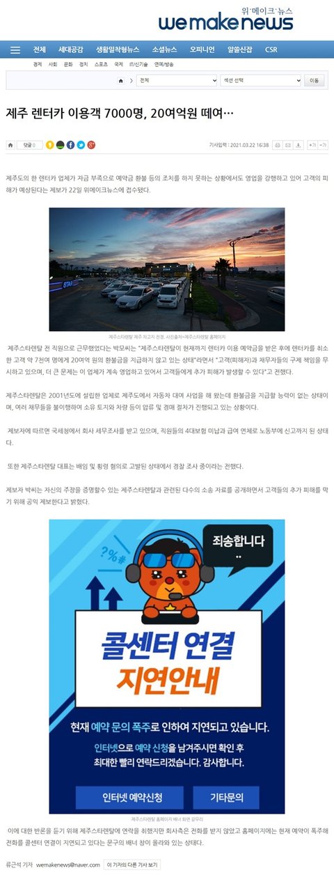 고객 피해 양산하는 제주 스타렌터카를 고발하며,앞으로 더 이상의 피해가 없도록 하기 위해 글을 올립니다.