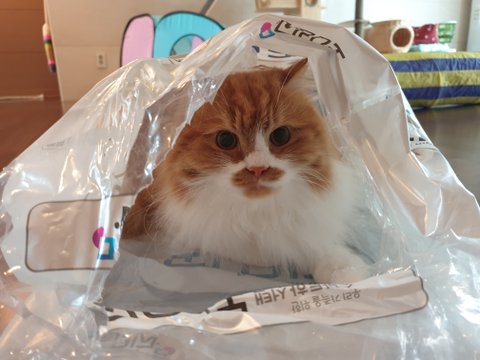 저렇게 비닐 봉투 안에 들어가는거 보면 호빵도 고양이는 고양이