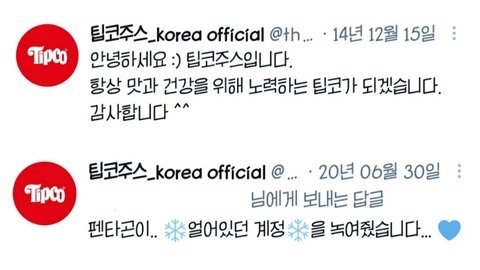 얼어있던 트위터 팁코 계정도 녹여주셨고