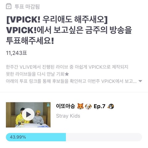 며칠 전에 브이픽 투표하자고 글 올렸는데