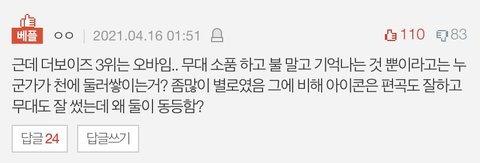 순위발표 이후 즈즈즈에 대한 후려치는 글들과 댓글들이 늘어남