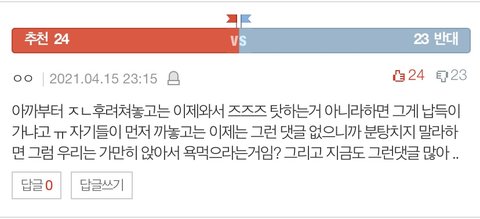 후려치는 것이 억울해서 말한 댓글에 엄청난 비추도 달려있음