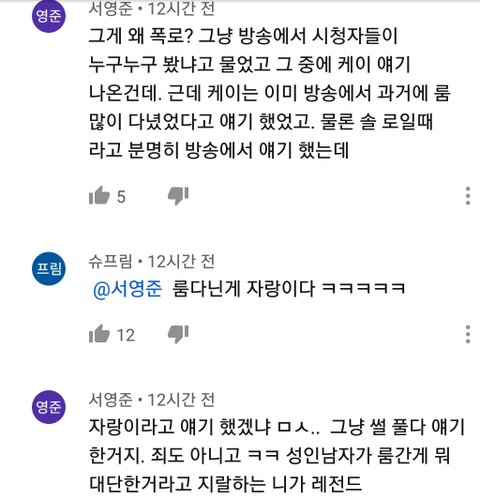 팬들 반응,, 케이 유튭에 본인이 직접 쩜오, 룸 썰푼것도 있음.. 걍 원래 그런 이미지임 요즘 공개연애하고 팬들이 달라졌다 정신차렸다 이러던데 사람 잘 안바뀜