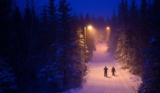 모든 동네에는 산책로가 있는데 겨울에는 스키장으로