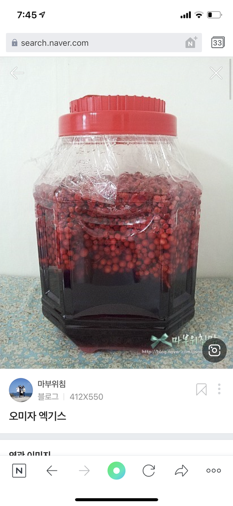 저희 아버지가 시골에서 오미자 농사를 지으시는데 얼마전에 제가 있는 곳으로 내려오셔서 저희 대표님 드리라고 오미자 액기스를 주고 가셨어요