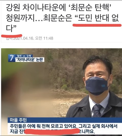 강원도에 인천의 10배에 달하는 차이나타운이 건설된다고 해요. 주최자는 코오롱과 강원도, 사업비는 국민들 세금 1조원 입니다. 이대로라면 차이나타운 건설을 막지 못할 겁니다. 중국으로부터 한국을 지킬 수 있도록 “최문순”을 탄핵시킵시다. 두 개의 청원에 모두 적극 참여해주세요 !