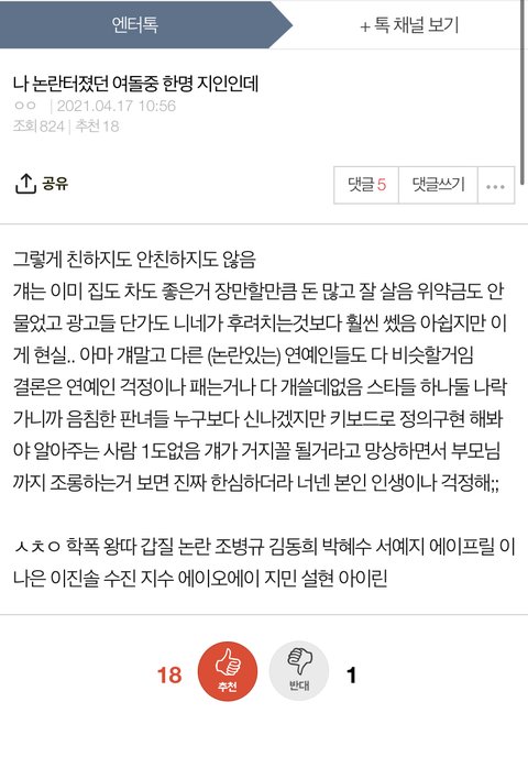 이나은 얘기인듯 궁금하면 참고해