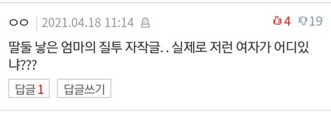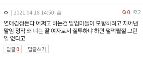 무슨 딸가진엄마가 질투해서쓴글이라는데