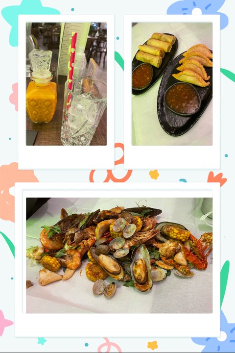 수요일 저녁은 딸이 리뷰 보고 태국 식당을 예약했어요. 너튜브에서 유행했던 먹방에서 해산물을 두 손으로 우적우적 먹는 것이 좋아 보였는지 딸이 씨푸드 보일을 먹자고 해서 4인분을 사진처럼 식탁 위에 종이를 깔고 해산물을 붓고 일회용 장갑에 턱받이 하고 두 손으로 해산물을 뜯어 먹었어요. 코코넛 라이스도 4인분 거기에 달달한 밀크티 캬~ 그렇게 맛있게 먹은 다음 날부터 둘째딸은 배탈이 나서 집에 와서도 고생을 했어요 ㅠㅠ