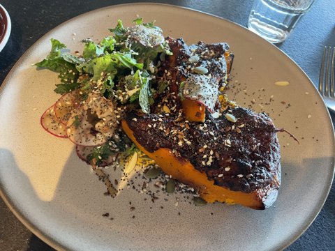 저는 여행을 가도 늘 일찍 일어나 조깅이나 산책을 즐겨서 저 혼자 호텔에 있는 카페에서 아침 식사를 했어요. 건강 생각해서 단호박 구이와 라지 커피 ㅋㅋㅋ 아침 식사로는 좀 엉뚱한 메뉴였던 것 같지만 평범한 메뉴는 질려서요. 제가 사는 동네는 카페가 너무 많아서 맛있는 커피나 음식 찾아 아이들과 여기 저기 다니길 몇 년 했더니 지금은 뭐 카페 메뉴에 식상해서요.아이들은 룸써비스 주문하고 저녁은 호주식 식당에 예약을 했는데 딸이 배탈이 나서 아들과 둘이 가고 딸은 사골국 한식당에서 배달해서 눈꼽만큼 먹었답니다. 저도 배가 좀 아팠지만 심하지 않아서 굶지 않고 꾸준히 먹었어요. 아줌마는 밥심에 사니까요 ㅎ