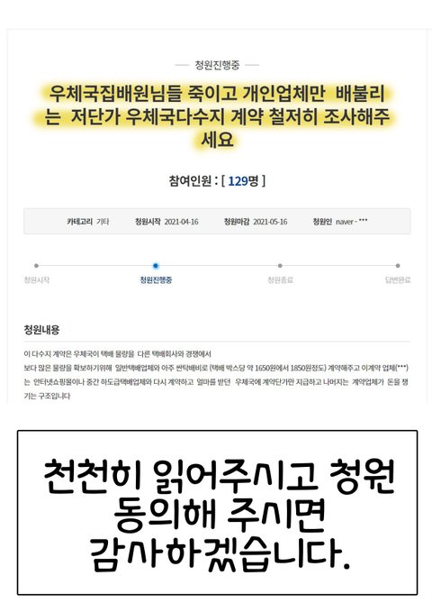 우체국집배원님들 죽이고 개인업체만 배불리는 저단가 우체국다수지 계약 철저히 조사해주세요