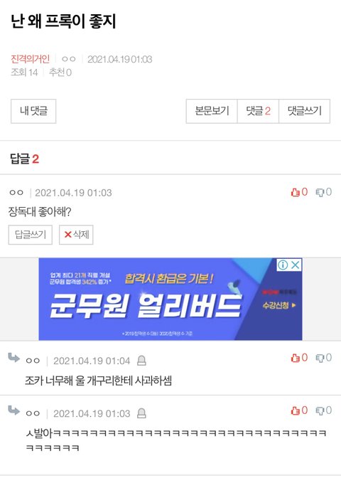 장독대라는 음경 같은 발언을 해서 죄송합니다
