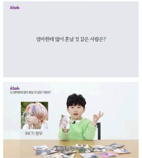 애기들한테 아이돌 사진 보여주면서 질문하는건데