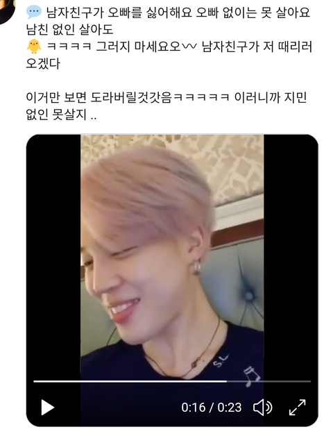 "나 방탄소년단 지민 너무 좋아!!" 라고 한다면