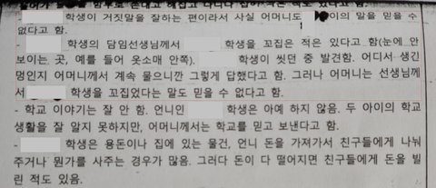 아이에 대한 학교의 조사 기록만이 경찰에 넘어갔으며 이미 수사는 한참을 진행되어버린 것입니다.