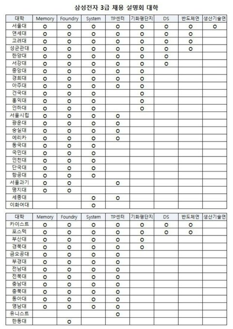 그리고 이 사진이 가장 확인사살인데, 이건 삼성총장추천제로 삼성의 높으신 분들이 어느 대학 출신들을 뽑고 싶어하는지 단 번에 알 수 있었지. 물론 당시에 학벌주의를 조장한다는 이유로 시행되지는 않았어.