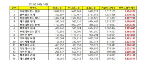 걸그룹은 브브걸이 새롭게 올라옴