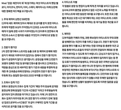 이메일 제목은 < Mnet ‘킹덤: 레전더리 워’ 논란에 대한 명확한 피드백을 요구합니다 > 로 통일 사진 첨부 / 인스타 디엠으로 사진 전송 / 해시는 하던대로!