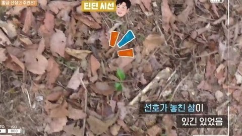 아까 김선호가 한참 뒤지다가 가짜 산삼 두개만 발견했던곳