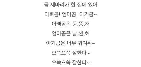 데키라 벌칙으로 곰 세 마리 동요 부른 거 있잖아거기서 승민이가 “엄마곰은 너무 예뻐~” 이러더라고 원래 내가 알고 있던 가사랑 다른 것 같아서 찾아보니까 엄마곰은 날씬해 -> 너무 예뻐 로 바꿔 부름...김승민 진짜 너무 좋아 미쳤어ㅠㅠㅠ❤️+애기곰 할 때 손가락으로 자기 가르키는거 보고 kijul원래가사