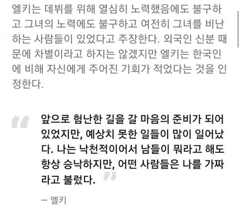 답은 절대아님 큐브가 이제 지원안해준다고 못박아서 숙소다뺐고 엘키는 본토가중국이라 중국온 상태고 한국활동하고싶어했음 엘키인터뷰보면 CLC 활동 계속하고싶어했고 멤버들이랑도 연락계속하고 지냄ㅠ 중국인은맞지만 중둘기는아니라는거 제발알아줘ㅠ 큐브에서 앨범지원안해준대서 자기 고향으로 돌아온거뿐임