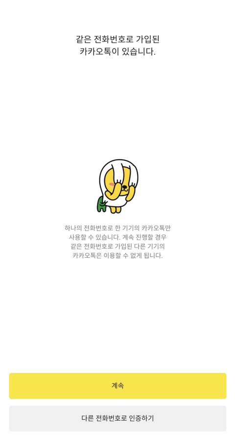 공기계로 카톡 로그인 하고싶은데 여기서 계속하면 어케되는지 아는사람!?