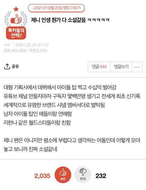 근데 여연갤에서 또 저걸로 제니한테 ㅈㄹ함 연예인이면서 무슨 저런말을 하냐고