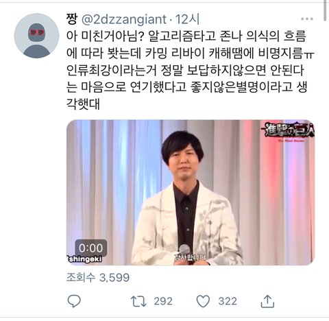 인류최강이라는 별명에 보답해야된다는 부담감 때문에 좋지 않은 별명이라고 생각한다니... 사실 리바이도 이런 부분이 좀 있었을거 같기도 함...