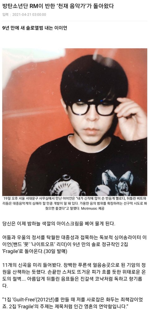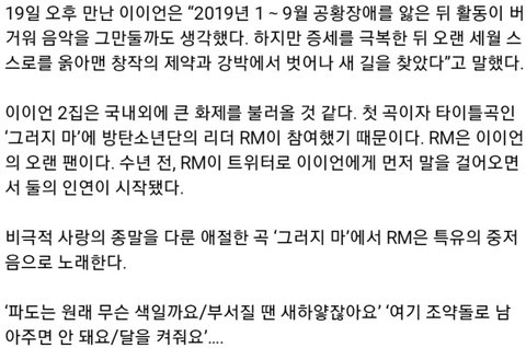 알엠 평소에 좋아하던 아티스트들이랑 콜라보 도장깨기 하는듯 ㅋㅋ 늘 가수랑 서로 맞성덕 부러움