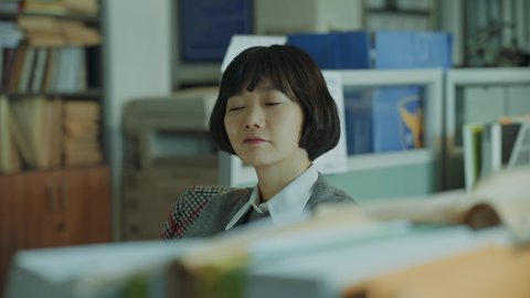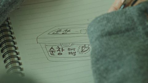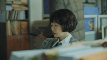 한여진(배두나)은 앉아서 노트에 그림 그리고 있고,