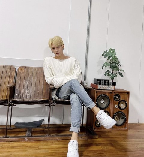 청바지 핏 무슨일 하얀 니트는 또 무슨일 자세는 또 뭐야