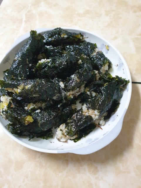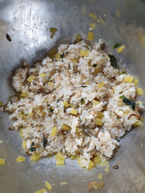 밥에 멸치 볶음 단무지 다져 놓고 참기름 통깨 두르고 비벼서 김에 싸면 되요.