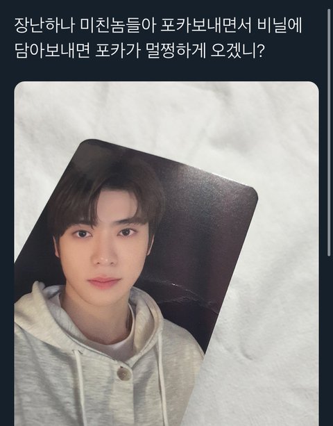 시 발 엔시티포카만 보고 사주는 건데 일을 안해? 옷도 시/발 지하상가에서 발주하냐 만원짜리 천떼기같이 생겨서는 장난치냐 아 내가 다 빡치네 옷이 주옥같이 생기면 포카라도 잘하라고 어이가 없네