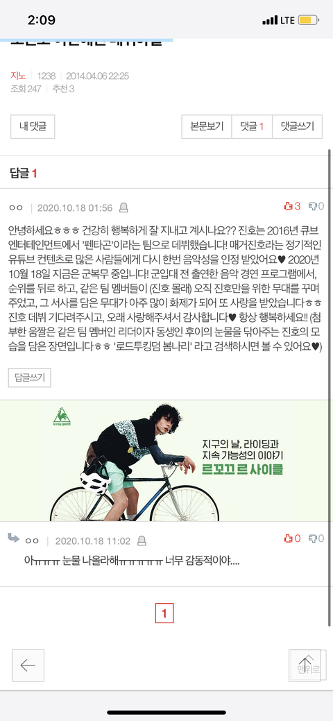 2014년 글과 2020년에 달린 댓글 ㅠㅠ