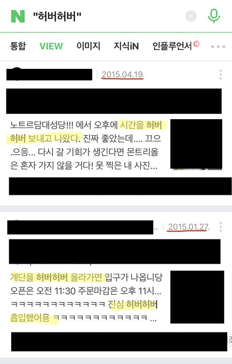 하지만 네이버에 "허버허버"만 검색될 수 있도록 검색하고 저 글이 올라온 후인 2018년 1월 5일까지 올라온 글만 볼 수 있도록 설정해 보면?
