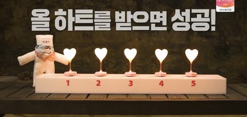 답변을 들은 판정단 (20 ~ 40대 여성 스태프)의 올 하트를 받으면 성공
