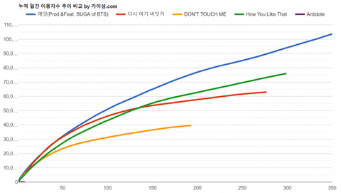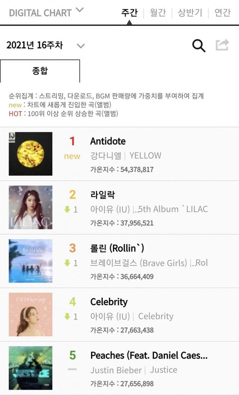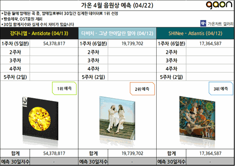 참고로 지금까지 가온지수 5천만 넘긴 음원은 4개였음...