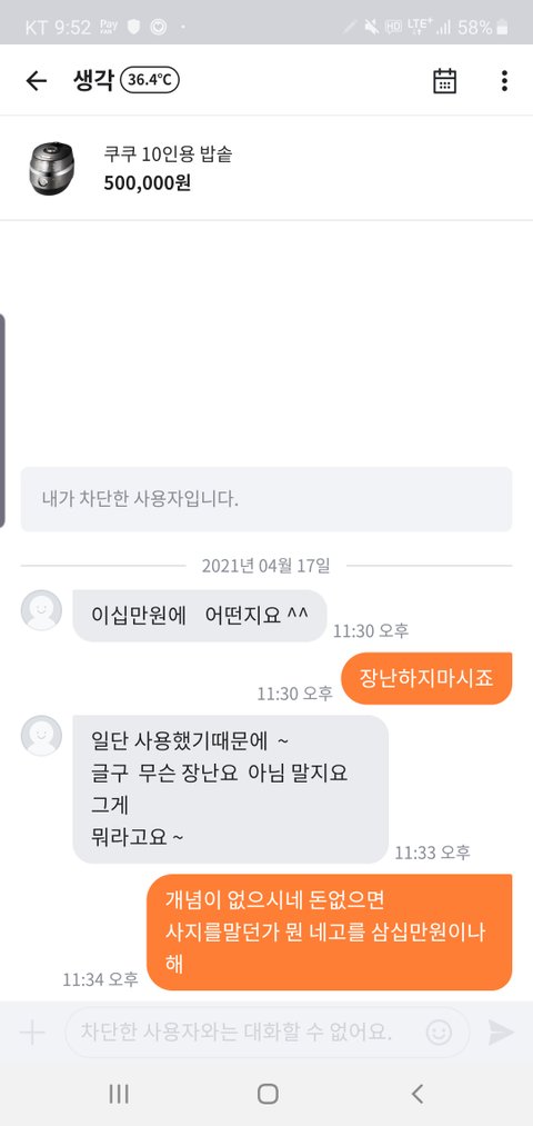 나도 세번밖에 안쓴밥솥 오십에 올려놨는데 30만원 깎아달라는 진상봄