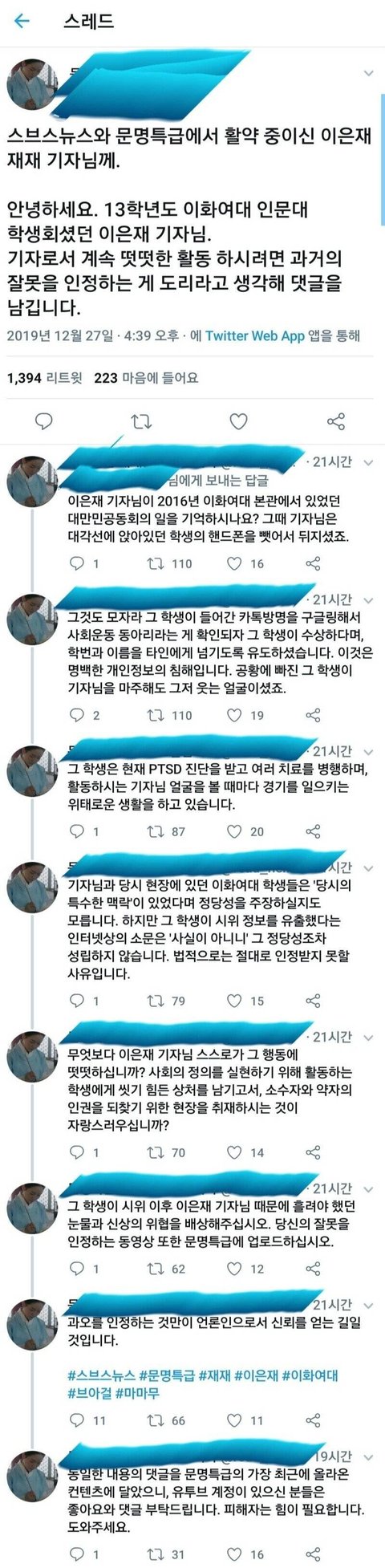 한남들의 열폭 포인트 다 가지고 있으니까ㅋㅋㅋㅋ 숏컷╋화장기없는 얼굴╋깔끔한 중성적 옷차림╋이대(사실 이 이유가 가장 큼)╋똑똑하고 능력있는 pd겸 엠씨╋지들은 아무도 관심 안가져주는데 재재는 지금 연예인들 러브콜 잔뜩 받고 잘나가고 있음ㅋㅋ 한남 발작 버튼 on-!!!