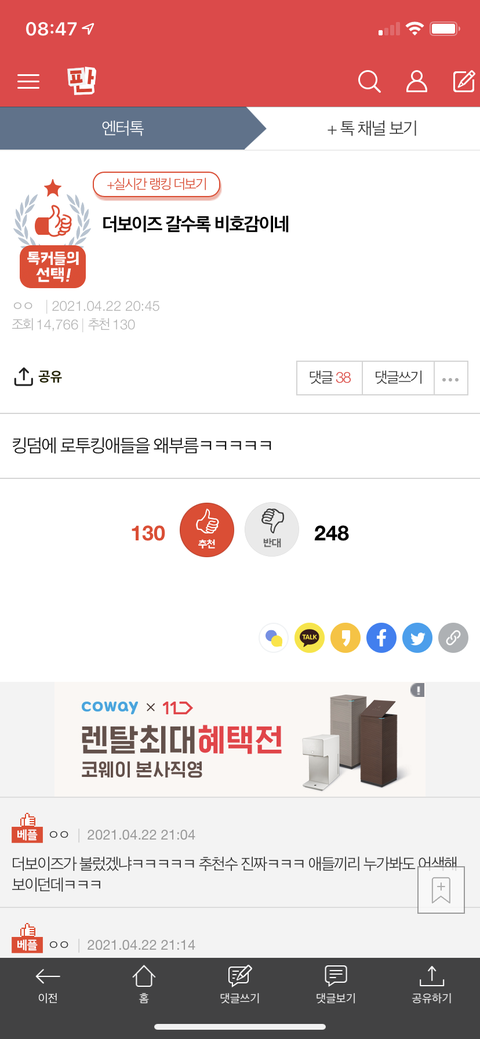 댓글판 ㅈㄹ날것 같은 거 미리 먹금 쳐놓긴 했는데 플 늘어나있으면 한번 더 먹금쳐줘